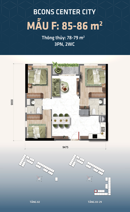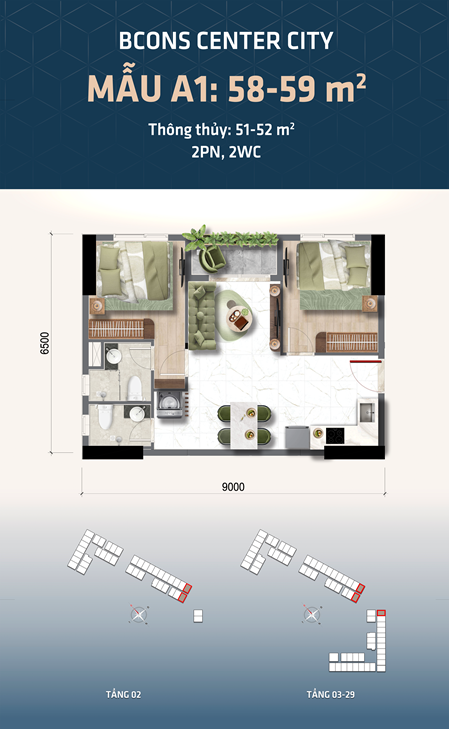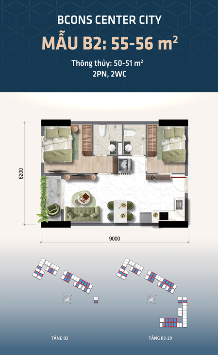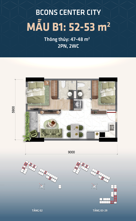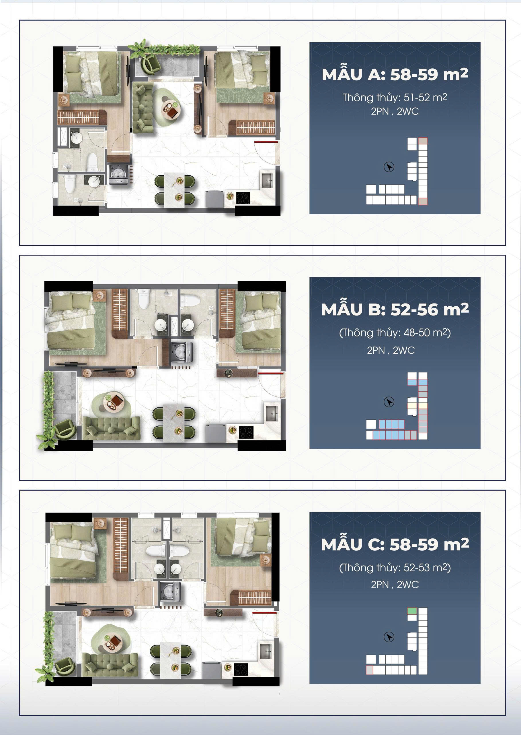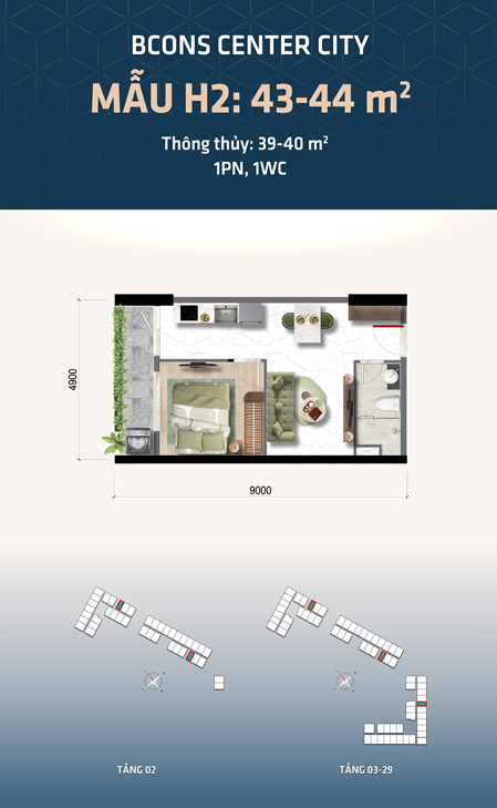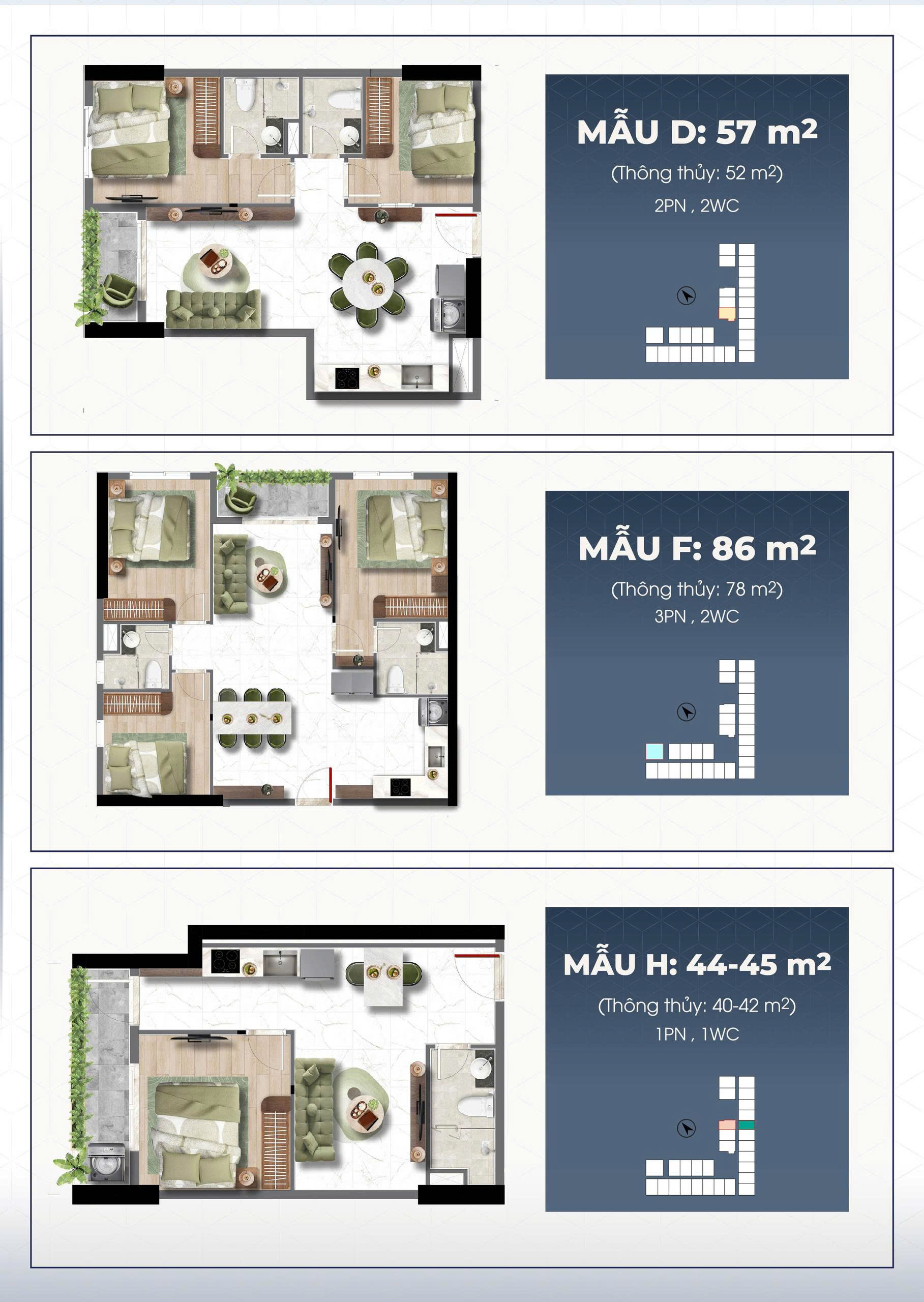 | Loại hình | Căn hộ 1PN – 2PN – 3PN |